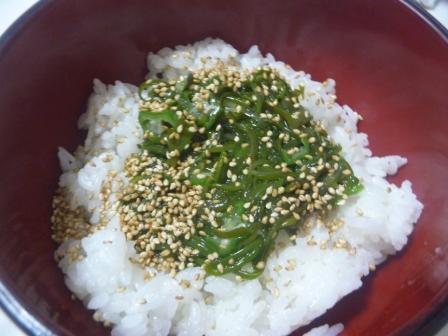 おくらめかぶごはん(ごはん、おくらめかぶ、醤油ごま)