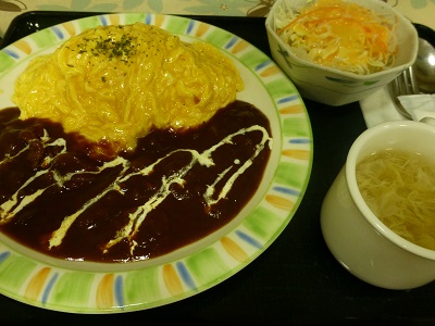 デミソースに合わせて中のケチャップライスの味は薄めでした。