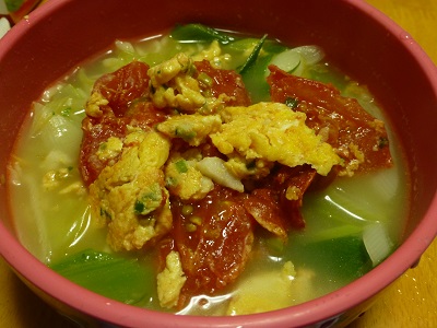 昨日の『トマトと玉子の炒め物』が残っていたので、