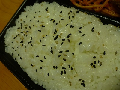 ご飯は210g 黒のいりごまがかかってます。