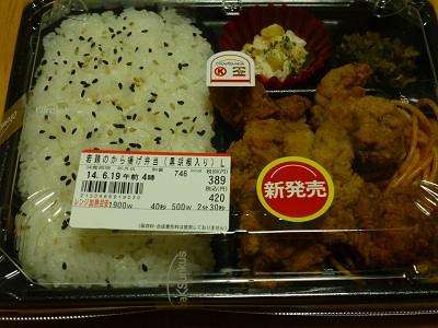 若鶏のから揚げ弁当(黒胡椒入り)@サンクス〔734kcal〕(全量:746kcal)