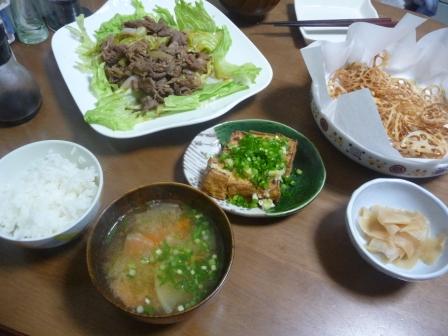 ラムの焼肉炒め (ラム・玉ねぎ・キャベツ・焼肉のたれ・レタス)