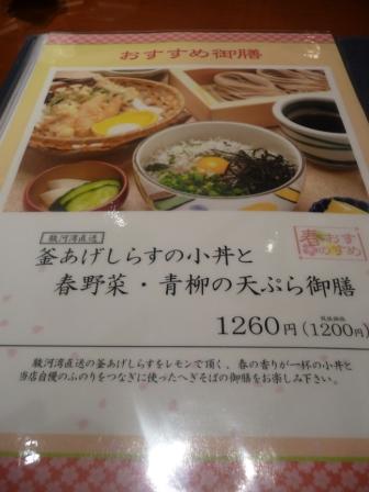 今日頼んだのは『おすすめ御膳:釜揚げしらすの小丼と春野菜・青柳の天ぷら御膳』