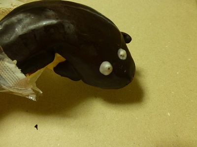 胸びれと尾びれが付いた S 字型のパン生地をチョコレートでコーティング。