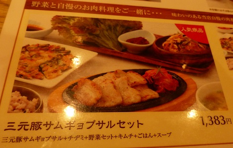 『三元豚サムギョプサルセット』1,383円