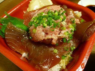(酢飯、ヅケまぐろ、ネギトロ、ガリ、醤油、わさび)