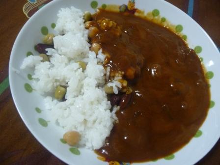 (ごはん:168kcal ミックスビーンズ:94kcal カリー屋ハヤシ:190kcal)