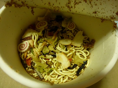 お湯を注ぐ前...フリーズドライの具がけっこう多めに思う。