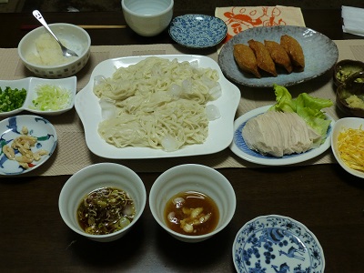 (稲庭うどん、めんつゆ、長ねぎ、小ねぎ、みょうが、しょうが、大根おろし)