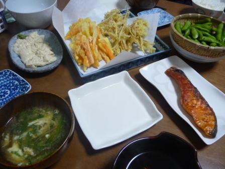 天ぷら2種:290kcal (ごぼうの天ぷら:155kcal にんじんと玉ねぎのかき揚げ:135kcal)