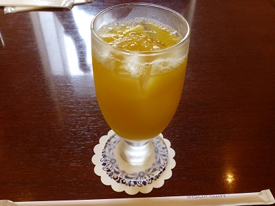 友の会優待のオレンジジュースをお腹が減っていたので先にいただきました。