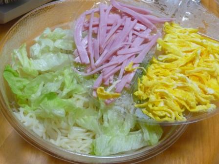 (冷やし中華:399kcal ロースハム:23kcal 錦糸卵:45kcal レタス:3kcal)