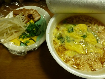 チキンラーメン+α〔435kcal〕(チキンラーメン〔370kcal〕、焼豚、もやし、小ねぎ)