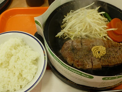 (ライス、サーロインステーキ、もやし、人参、いんげん、ステーキソース)