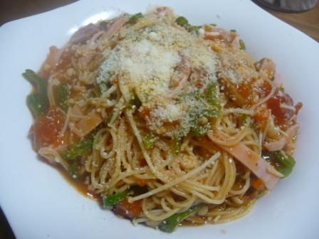 (カッペリーニ、ナポリタン〔レトルト・156kcal〕、ロースハム、えのき、ピーマン、