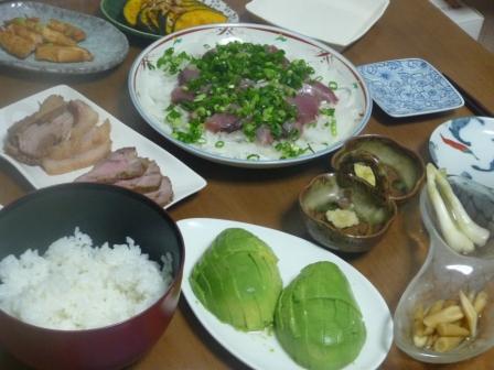 かつおの刺身とアボガドの刺身で手巻き風~☆