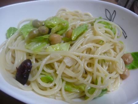 キャベツとミックスビーンズのアンチョビ風味スパゲティ:650kcal