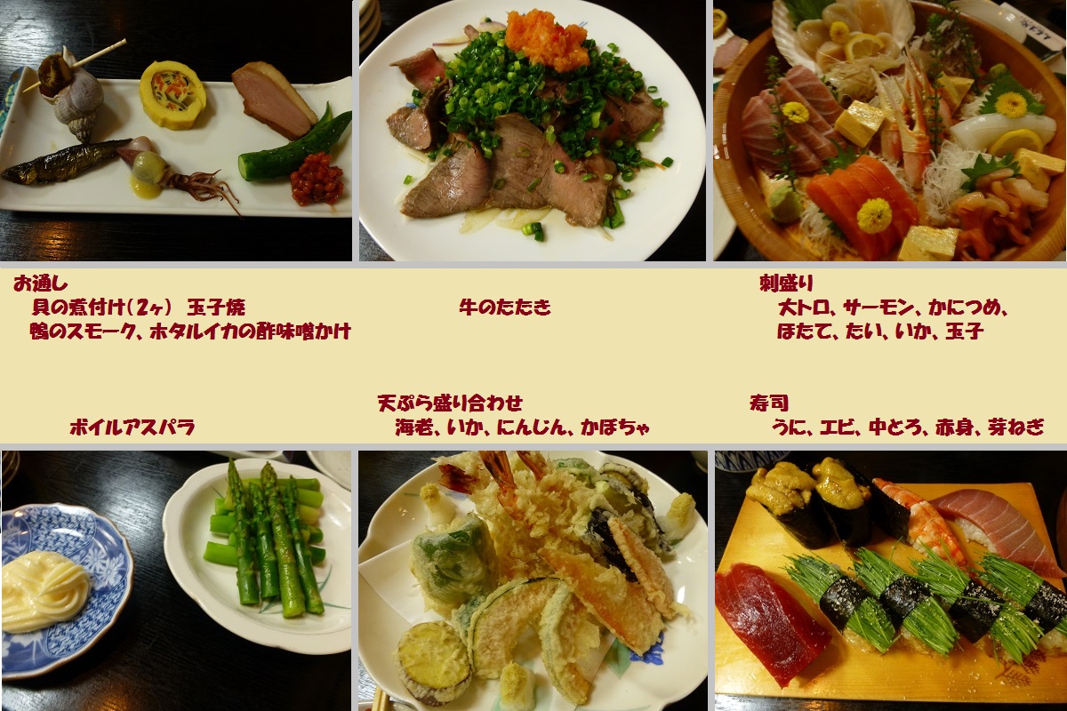 刺盛り(大トロ2、サーモン、かにつめ3、ほたて、たい、いか、玉子2)