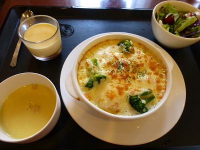 海老グラタン(サラダ、コーンスープ、デザート付)