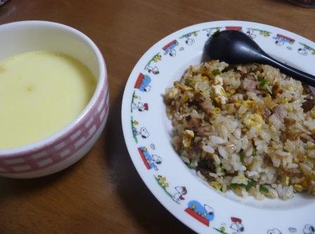 炒飯:460kcal (ごはん、煮豚、ねぎ、たまご、ラード、サラダ油、調味料...etc)