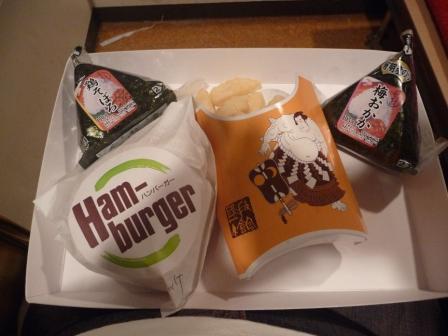 ハンバーガー&ポテトフライ。国技館にて購入。