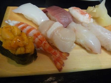 うに、えび、ほたて、たい、えんがわ、いか、中トロ、かに、いわし。
