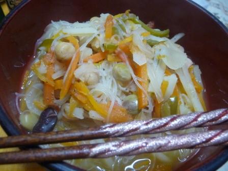 スープビーフン:270kcal (ビーフン:174kcal 野菜スープ+ミックスビーンズ)