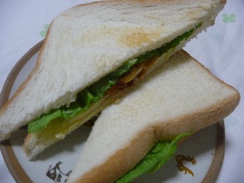 (食パン2枚:230kcal イカリングフライ2つ:106kcal チーズ:60kcal ソース レタス)