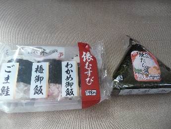 俵むすび(ごま鮭、梅御飯、わかめ御飯):307kcal