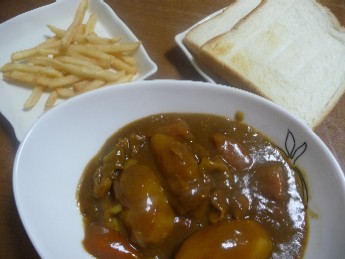 カレー&トースト:500kcal (カレー、食パン〔8枚切・2枚 230kcal〕)