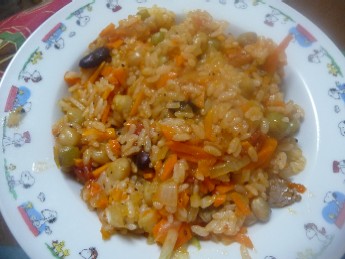 (ごはん120g、ホールトマト、玉ねぎ、にんじん、ミックスビーンズ、ケチャップ、バター)