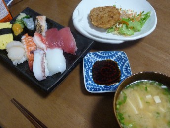 まぐろ2貫:88kcal かに:38kcal えび:45kcal ほたて:43kcal