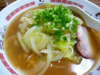 野菜みそラーメン:565kcal (サッポロ一番みそ、焼豚1枚、キャベツ、もやし、酢、ラー油)