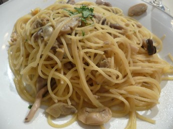 アサリとキノコのペペロンチーノ