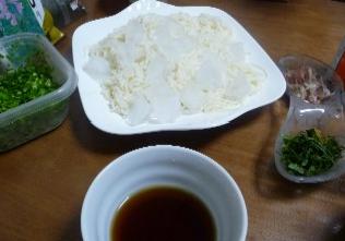 冷奴:50kcal (絹ごし豆腐、小ねぎ、みょうが、しょうが、しそ、しょうゆ)