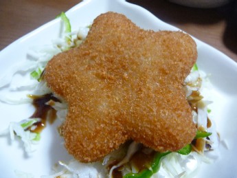 星のコロッケ 1.5個@OKストア:262kcal (星のコロッケ〔156kcal〕キャベツ、ピーマン、ソース)