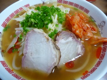 (サッポロ一番みそラーメン、焼豚、キャベツ、もやし、玉ねぎ、キムチ、小ねぎ、酢、ラー油)