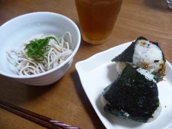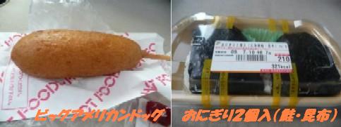 おにぎり2個:344kcal (味道楽ふりかけおにぎり、混ぜ込みわかめおにぎり)