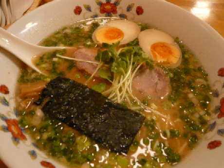 (中華麺、ごまだれつゆ、焼豚、煮玉子1/2個、メンマ、かいわれ、海苔、小ねぎ)