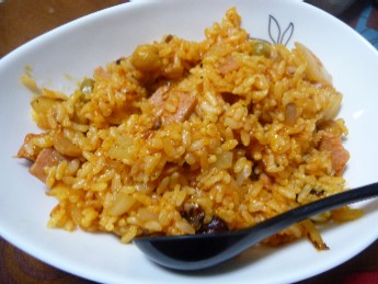 ケチャップライス:591kcal (ごはん、ケチャップ、バター、チョリソー、玉ねぎ、ミックスビーンズ)