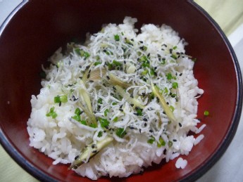 (ごはん200g、ちりめんじゃこ・みょうが・小ねぎ・ごま塩)