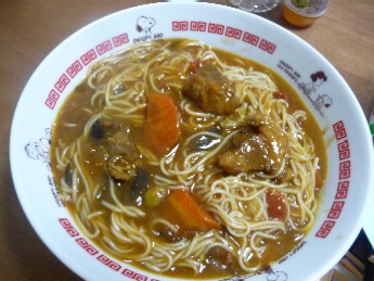 カレーそうめん:680kcal (そうめん2束、カレー、めんつゆ、片栗粉)