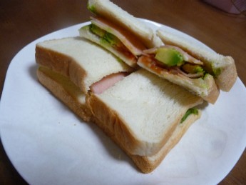 (食パン〔8枚切・2枚/230kcal〕、アボカド、ハム、チーズ〔60kcal〕、玉ねぎ〔みじん切り〕、ケチャップ)