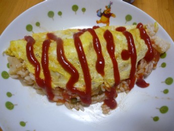 オムライス:387kcal (ごはん100g、トマトスープ、ジャーマンポテト、ケチャップ、たまご、サラダ油)