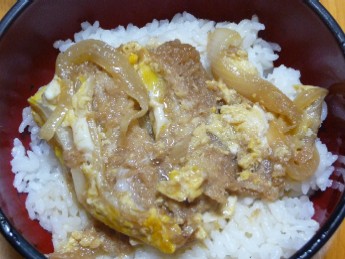 かつ丼:525kcal (ごはん200g、かつとじ、黒薬味)