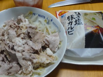 豚しゃぶ:203kcal (豚小間切れ、もやし、ポン酢)