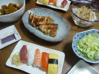 寿司 6貫@ヨーカドー:282kcal (まぐろ、いか、えび2貫、さけ、玉子)