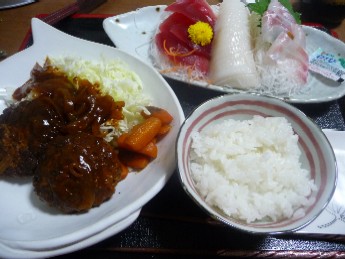 刺身:44kcal (まぐろ、いか、たい 各1切)