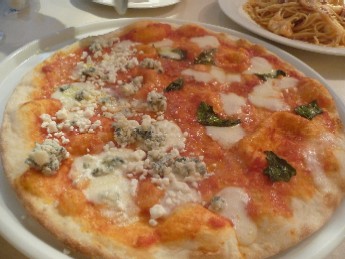 クワトロフォルマッジ・・・4種のチーズを乗せたピザ。ゴルゴンゾーラ、効いてました!