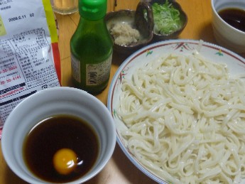 (うどん、そうめん、つゆ〔めんつゆ、卵黄、長ねぎ、しょうが、すだち果汁、すりごま〕)